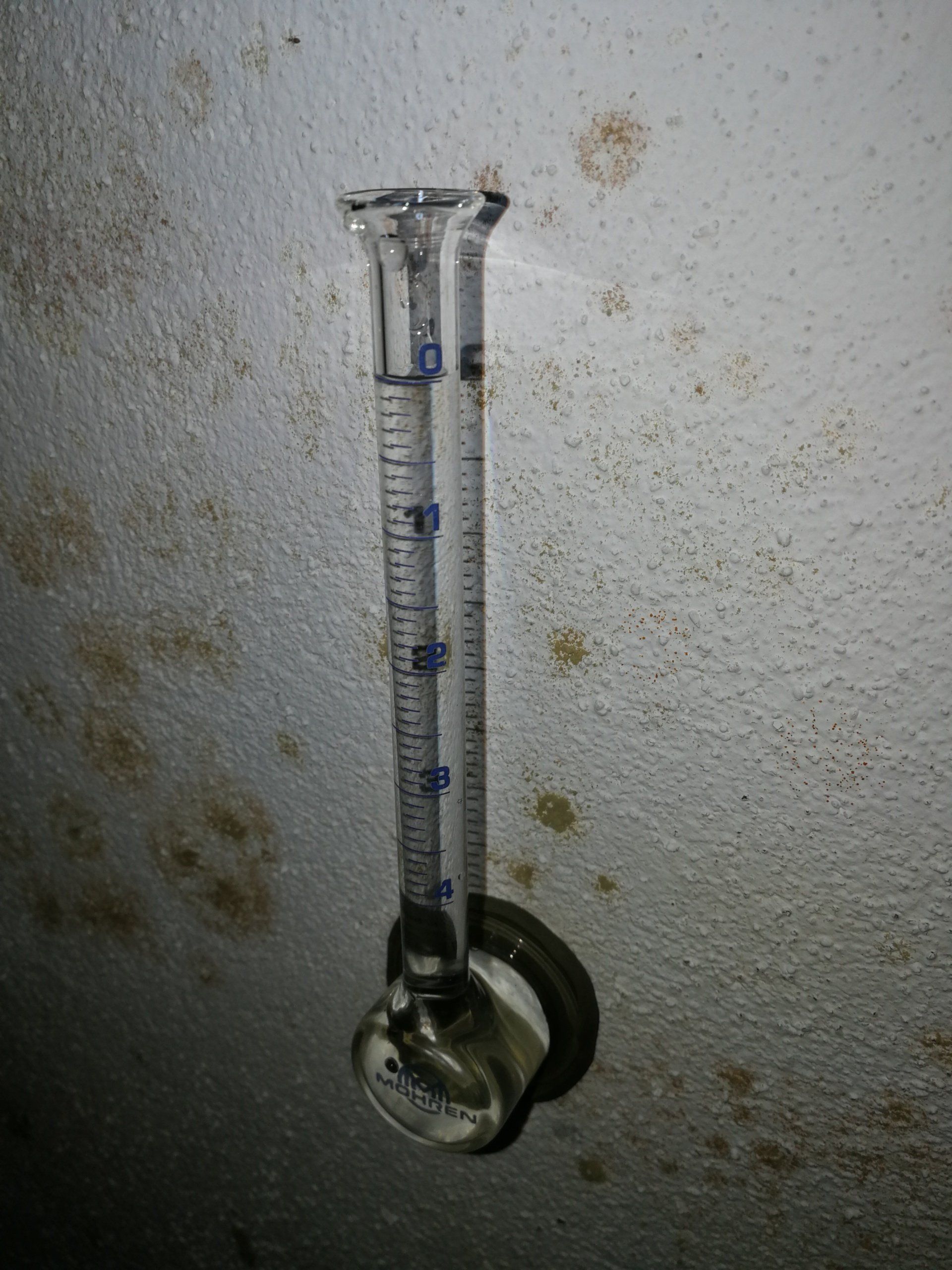 Aufgrund einer defekten Abdichtung der Hohlkehle sowie einer mangelhaften Horizontalsperre ist in diesen Kellern Wasser über der Bodenplatte und unterhalb des Estrichs in die Wände eingedrungen. In den beiden rechten Bildern ist ersichtlich, dass selbst in den Innenwänden Feuchtigkeit kapillar aufgestiegen ist. Zum Teil kam es bereits gesundheitsschädlicher Schimmelbildung. Gerade der Schimmel, der sich über Sporen in der Raumluft verteilt (was bereits am Geruch deutlich wahrgenommen werden kann), kann extrem gefährlich werden, insbesondere, wenn in den Räumen noch Lebensmittel gelagert werden. In beiden Fällen wurde eine horizontale Fugenabdichtung v on innen eingebracht. Dieses Verfahren dichtet die betroffenen Mauern nachhaltig ab und verhindert ein weiteres Eindringen von Wasser. Insbesondere an Außenwänden kann eine solche Vorgehensweise, durch gezieltes Positionieren von Bohrungen, das Eindringen von Wasser über die Hohlkehle verhindern. Der Kellerfußboden ist ein Betonfußboden. Dieser Sachverhalt weist auf eine Druckwasserbeanspruchung der erdberührten Außenwände im Zusammenhang mit einer geringen Wasserdurchlässigkeit der Erdschichten vor den Außenwänden. Nach Abschluss der Injektion sind die Bohrlöcher mit baustoffverträglichen Materialien formschlüssig zu verschließen. Die Bohrlöcher würden ansonsten als Perforierung des abgedichteten Querschnitts fungieren.